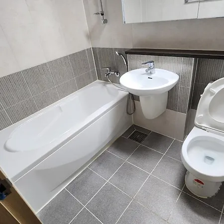 Mabu Apartment offers guests the convenient feature of a hair dryer, bath sheets, and slippers in the bathroom. A separate toilet and a shower can also be found.